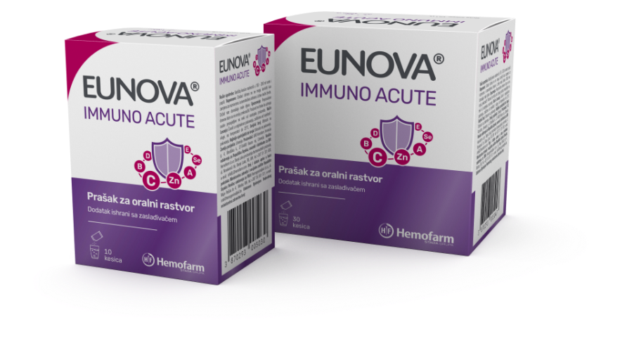 EUNOVA Immuno Acute je dodatak ishrani, koji sadrži posebno odabranu kombinaciju vitamina, minerala i antioksidanasa za snažnu podršku imunitetu kada vam je najpotrebnije! Veoma je prijatnog ukusa, sa prirodnim aromama narandže i breskve.