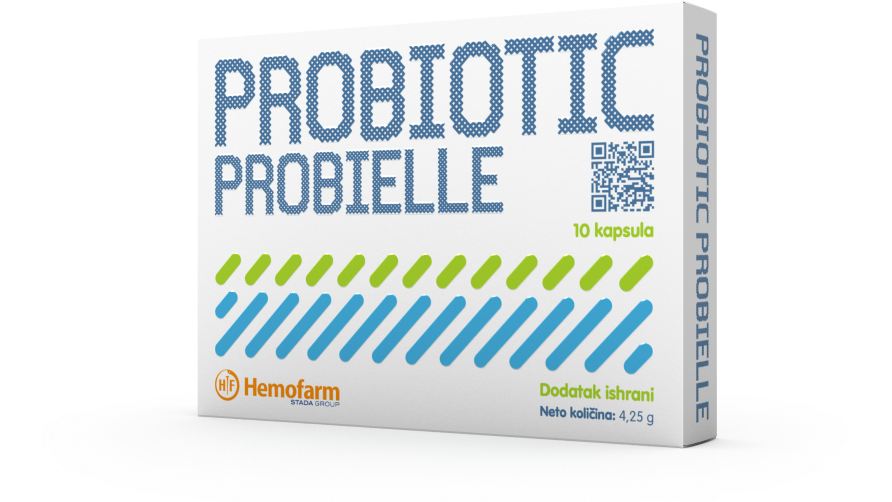 Probiotic Probielle sadrži probiotske bakterije (Lactobacillus helveticus, Lactobacillus rhamnosus i Bifidobacterium longum) u količini od 5 milijardi u jednoj kapsuli.