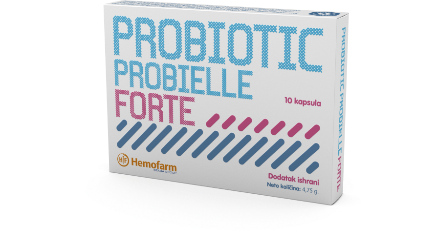 Probiotic Probielle forte sadrži kombinaciju probiotskih bakterija (L. helveticus, L. rhamnosus, B. Longum) i probiotskog kvasca Saccharomyces boulardii u količini od 14 milijardi u jednoj kapsuli.